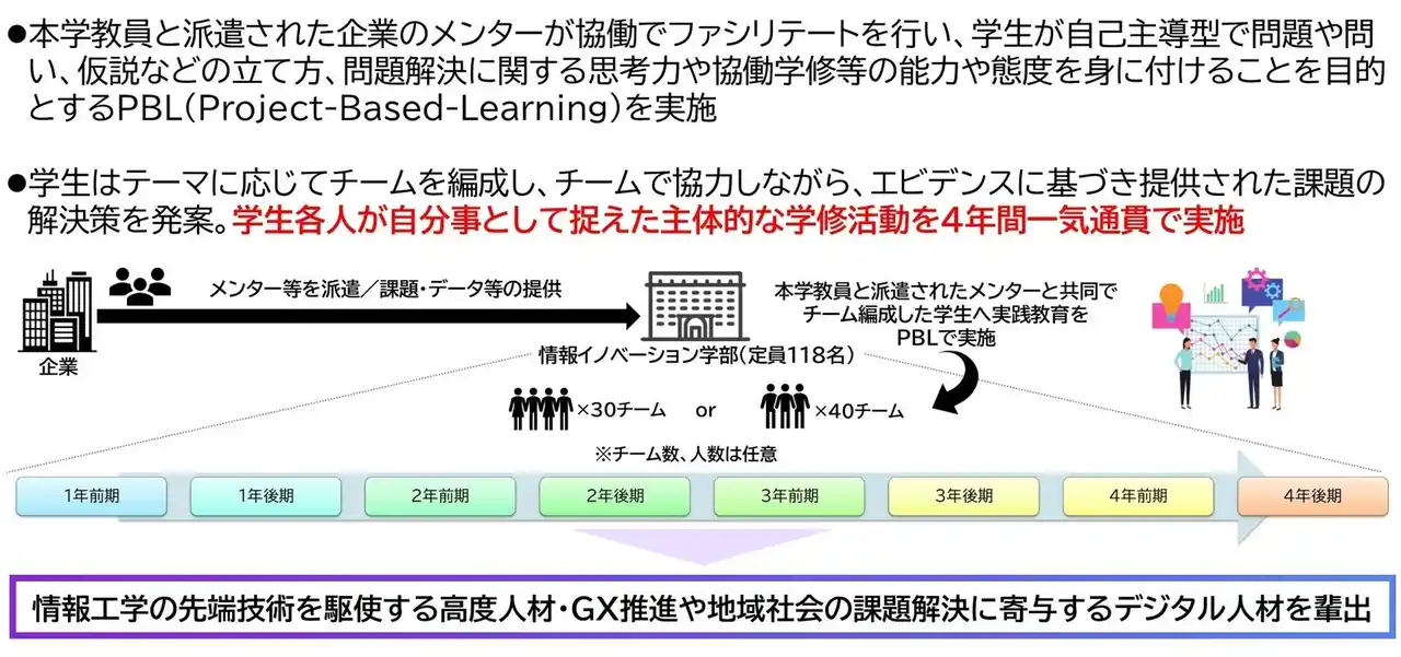 今回の連携協定においては、ギグワークスクロスアイティが有するグループ全体のネットワークによる幅広いソリューションを活用し、新学部における課題解決型学習(PBL:Project Based Learning)を支援する講師・メンターの派遣等を通じて、地域社会の課題解決に寄与するデジタル人材の創出と地域の経済発展に貢献します。 |
