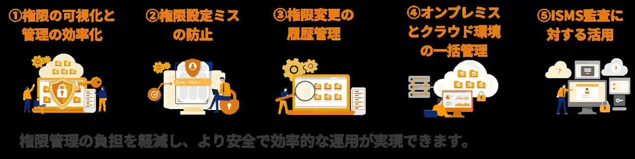 | ~オンプレミスからクラウドまで対応し、複雑なアクセス権を可視化・一括登録で運用負荷削減~ |