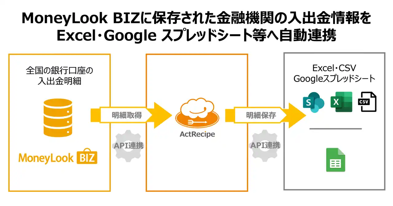 MoneyLook BIZに保存された金融機関の入出金情報をExcel・Google スプレッドシート等へ自動連携 |