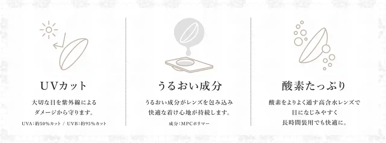 3. UVカット機能、うるおい成分など瞳に優しいレンズスペック |