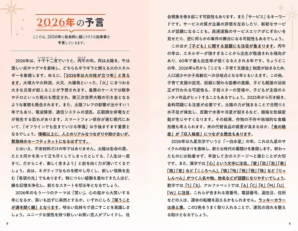 2026年の予言や、星回り、運勢、方位ごとの運気を収録。 |