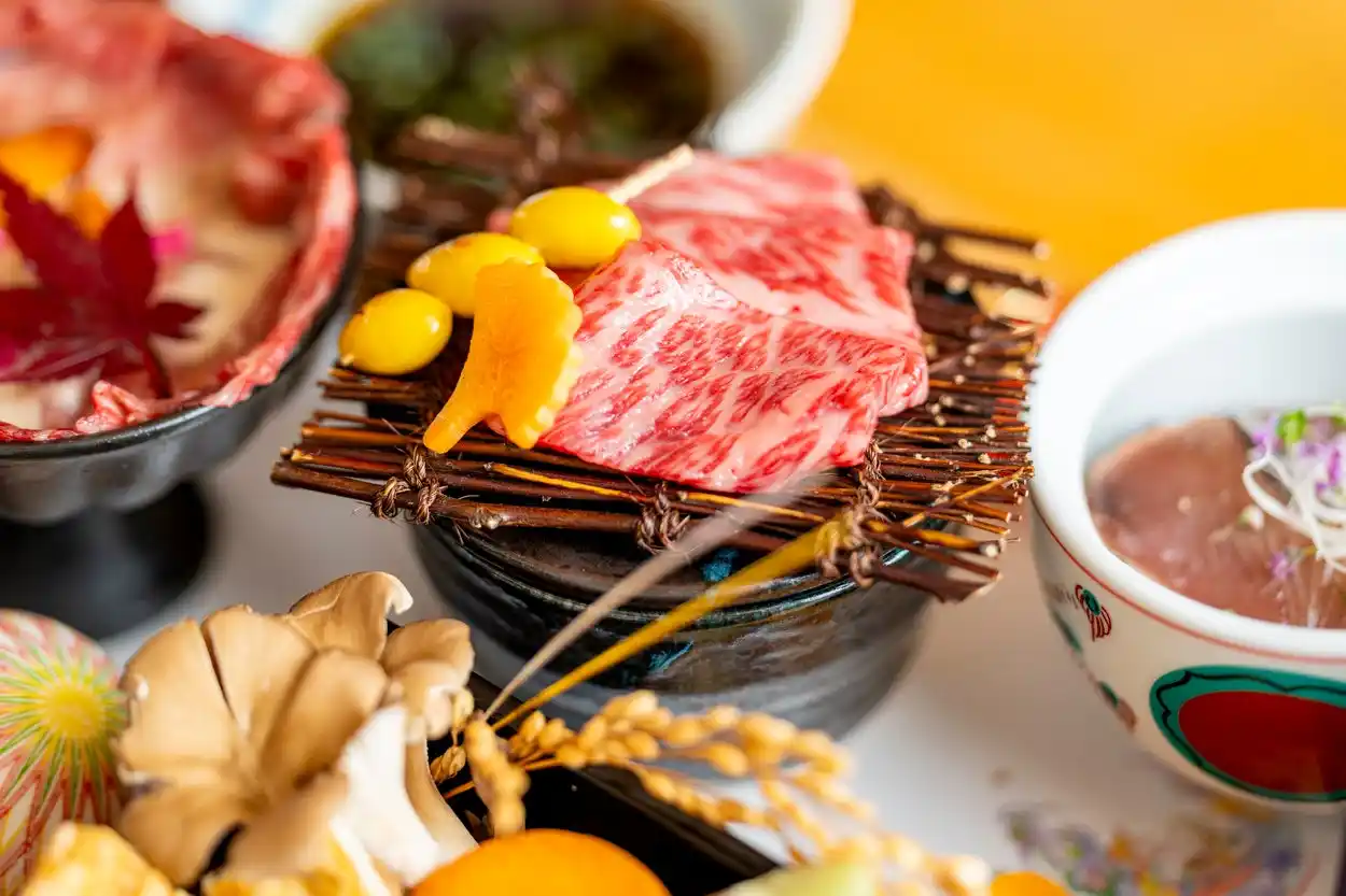 秋の季節、京都の食材をふんだんに使用した、五木茶屋 先斗町店ならではの御膳をご用意いたしました。厳選された和牛と、秋の彩り豊かな食材を特別な空間でご堪能ください。 |