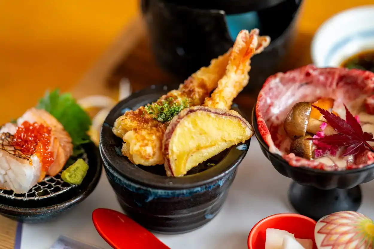 各丼には料理長が趣向を凝らした調理法と味付けが施され、食べ比べることで味覚の多彩さを存分に体験できます。 |