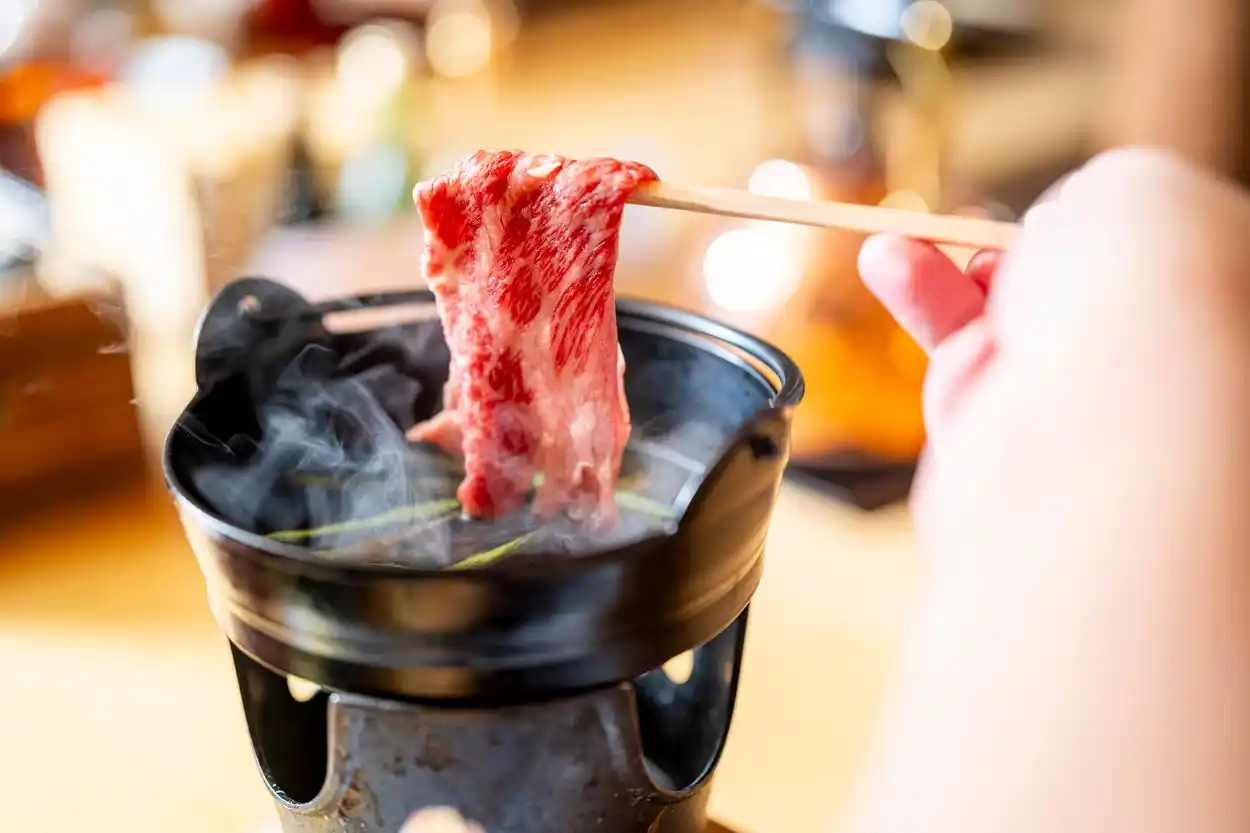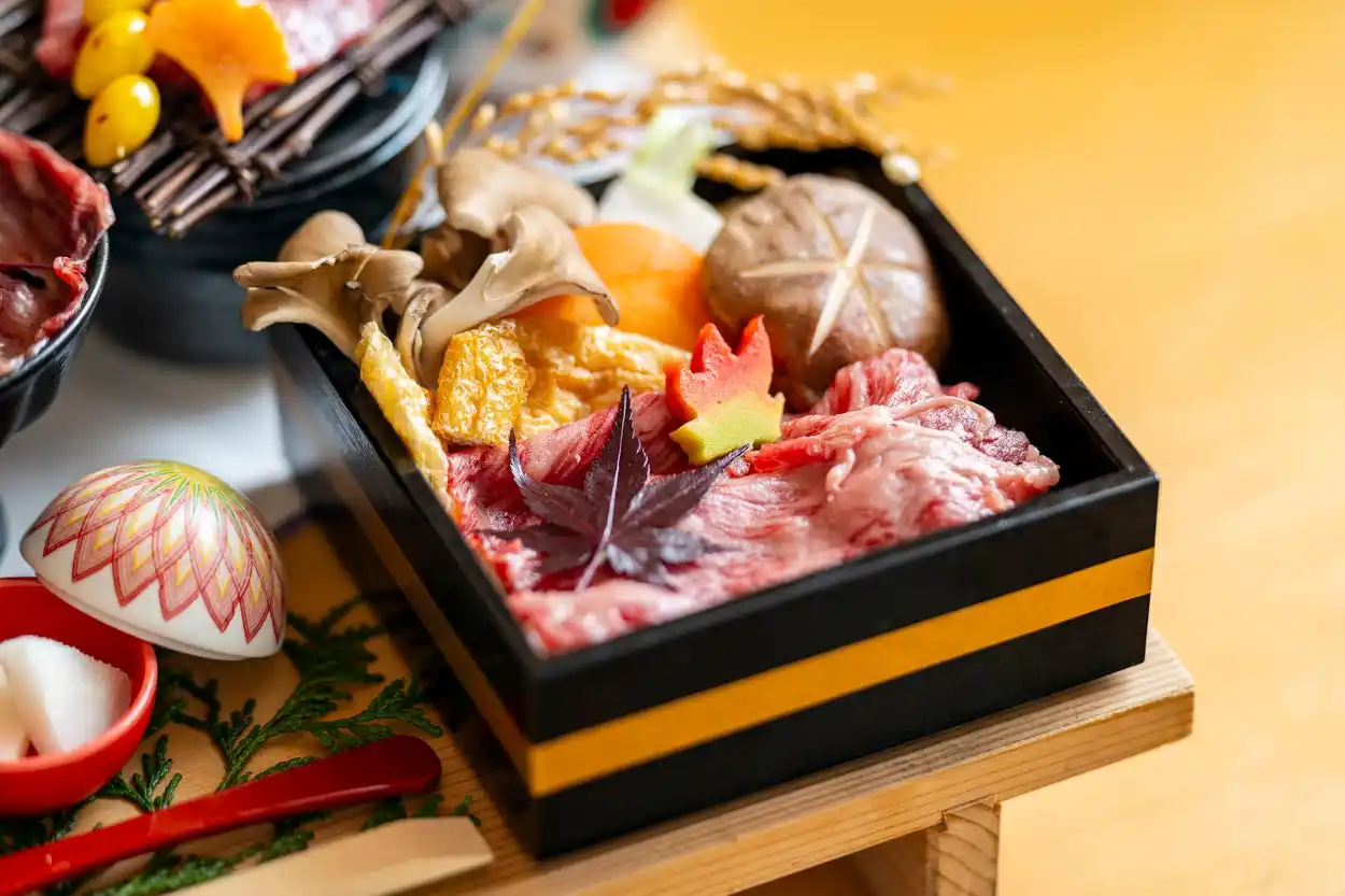 厳選した黒毛和牛を、特製出汁で味わうすき焼き。 |