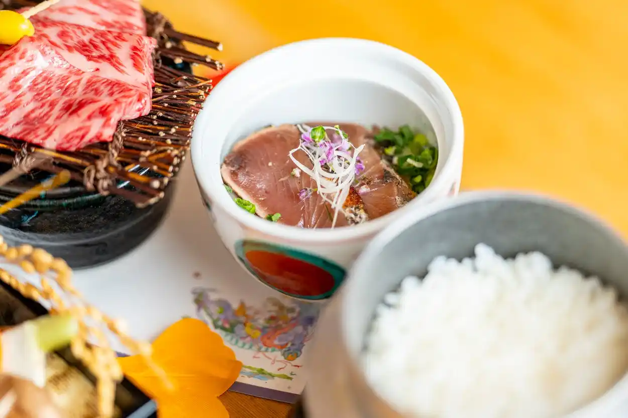 鰹と昆布で引いた香り高い出汁が、鰹の濃厚な旨みを引き立てる上品な茶漬けです。 |