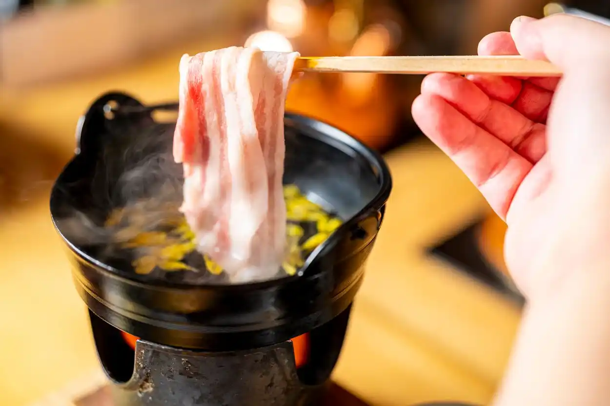 店主こだわりの特製出汁で味わう国産豚のしゃぶしゃぶ。 |