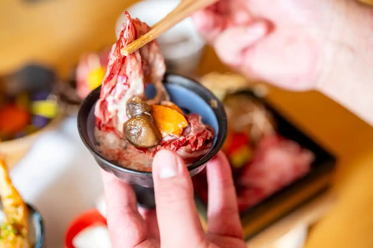 霜降りの旨みと脂の甘みが出汁に溶け込み、一口ごとにとろけるような贅沢な味わいが広がります。 |
