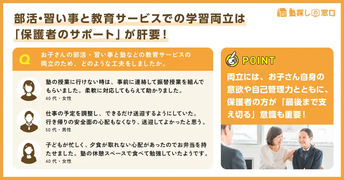 ■部活・習い事と教育サービスの両立達成には、保護者のサポートが不可欠 |