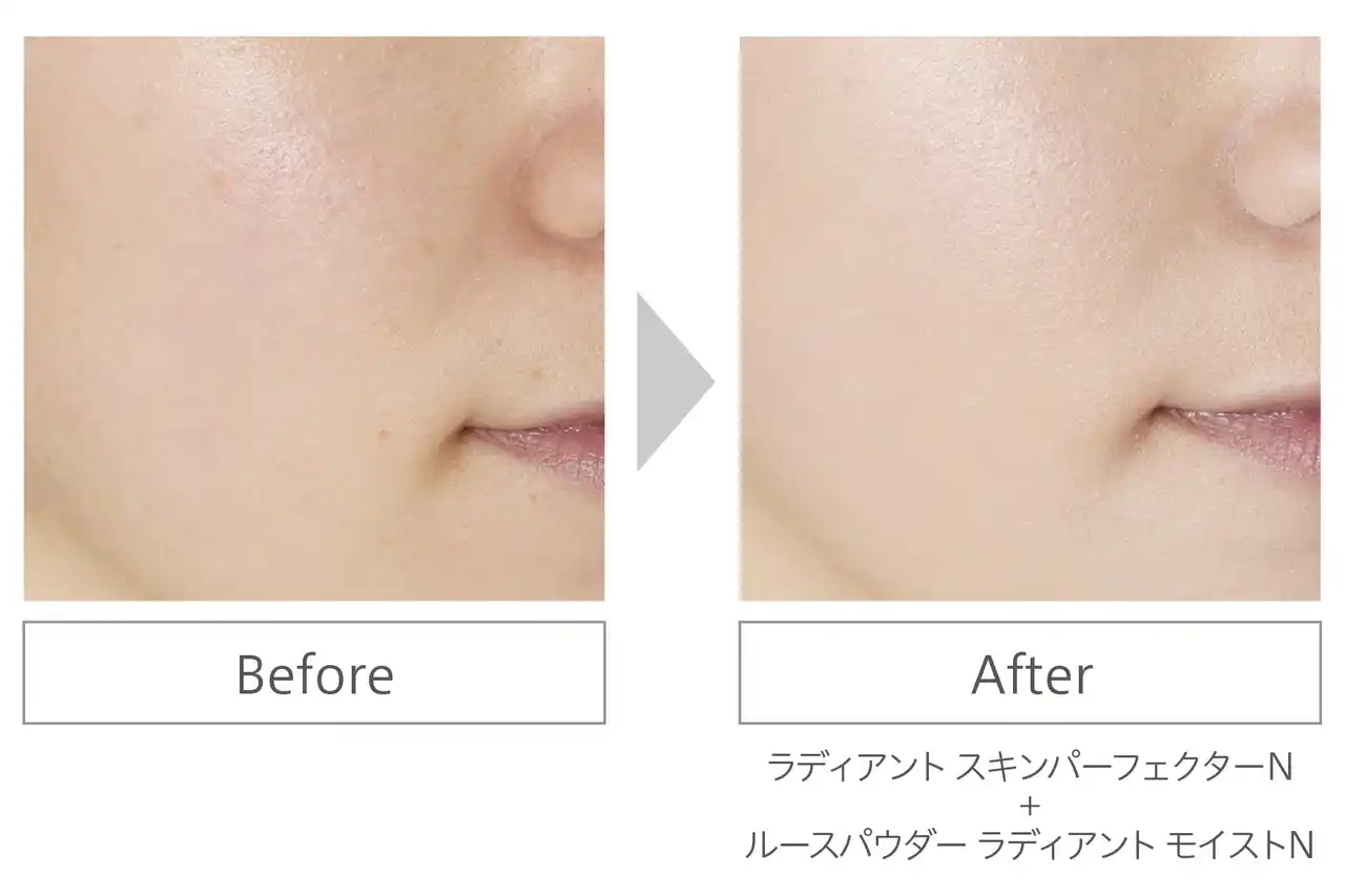 どんな肌色にも自然になじみながら光を反射し、内側から発光するような明るく美しいツヤを演出します。スムージングパウダー*²配合で、肌にとけ込むようになじみ、毛穴レス*¹な印象の肌へ。 |