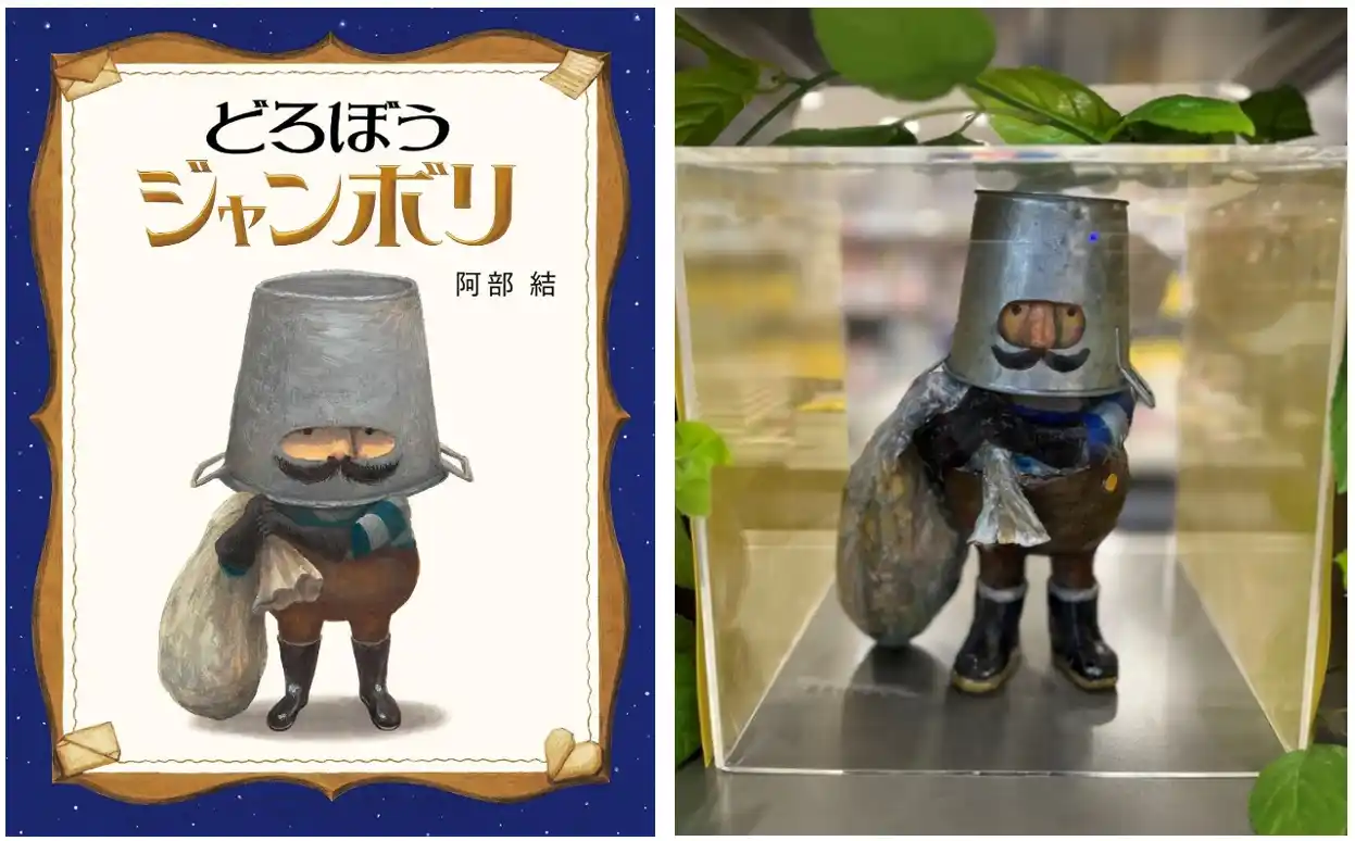 絵本『どろうぼうジャンボリ』と未来屋書店各務原店 店長作 作品フィギュア |