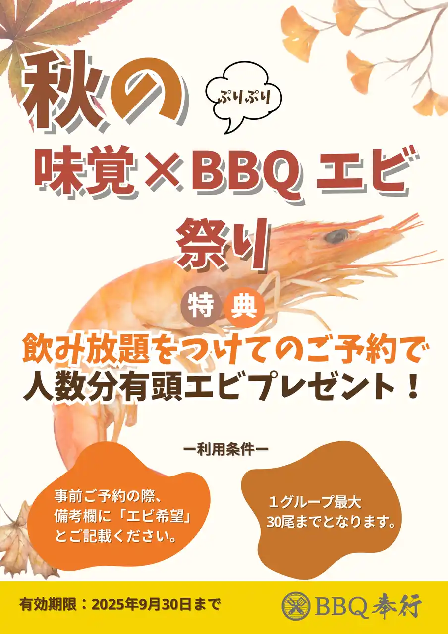 ★ 9月は秋の味覚×BBQエビ祭りキャンペーン! |