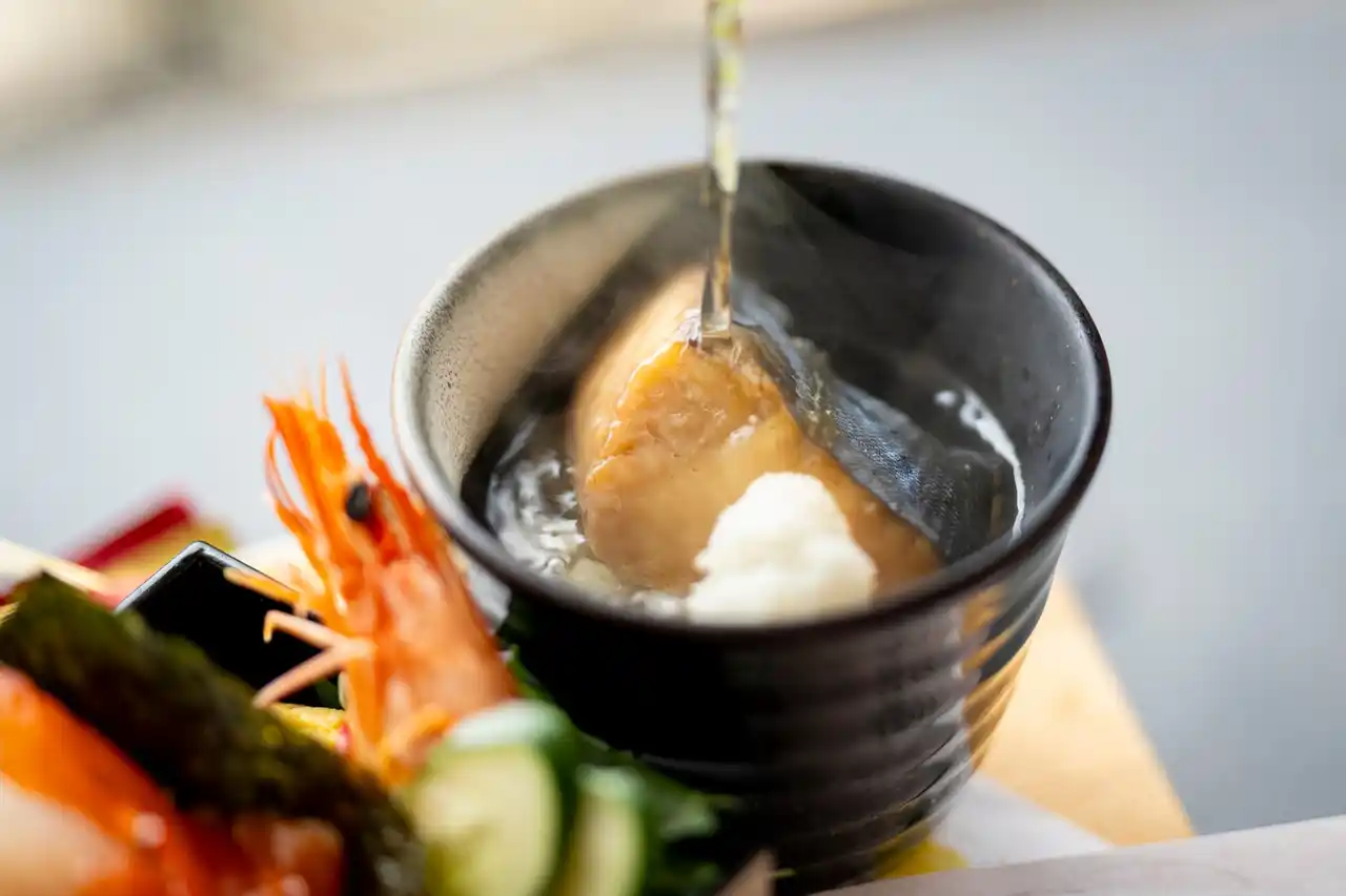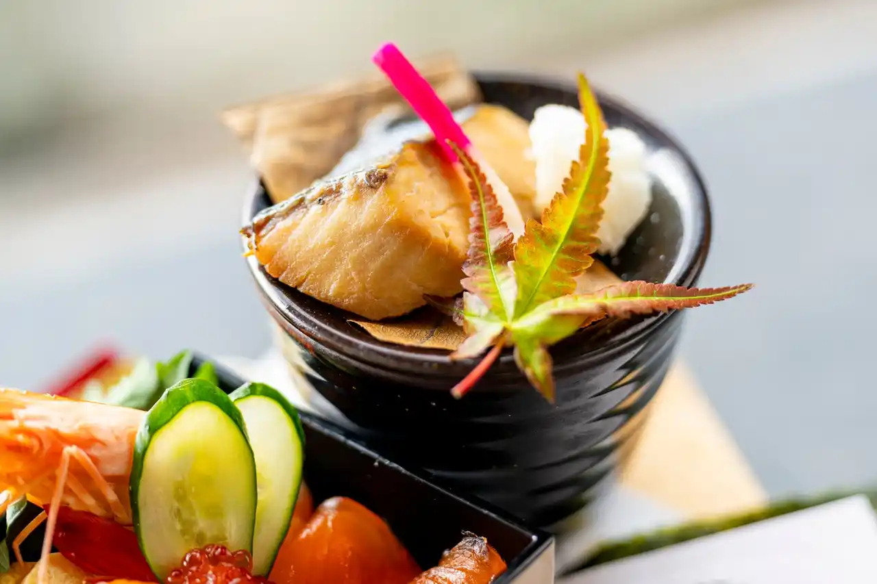 自家製のつけダレに漬け込んだ鰆を特製のお出汁でいただく「鰆の幽庵焼き丼」は、柑橘の香りと鰆の旨みを感じられます。秋の桂川を見ながら優雅な時間をお過ごしください。 |