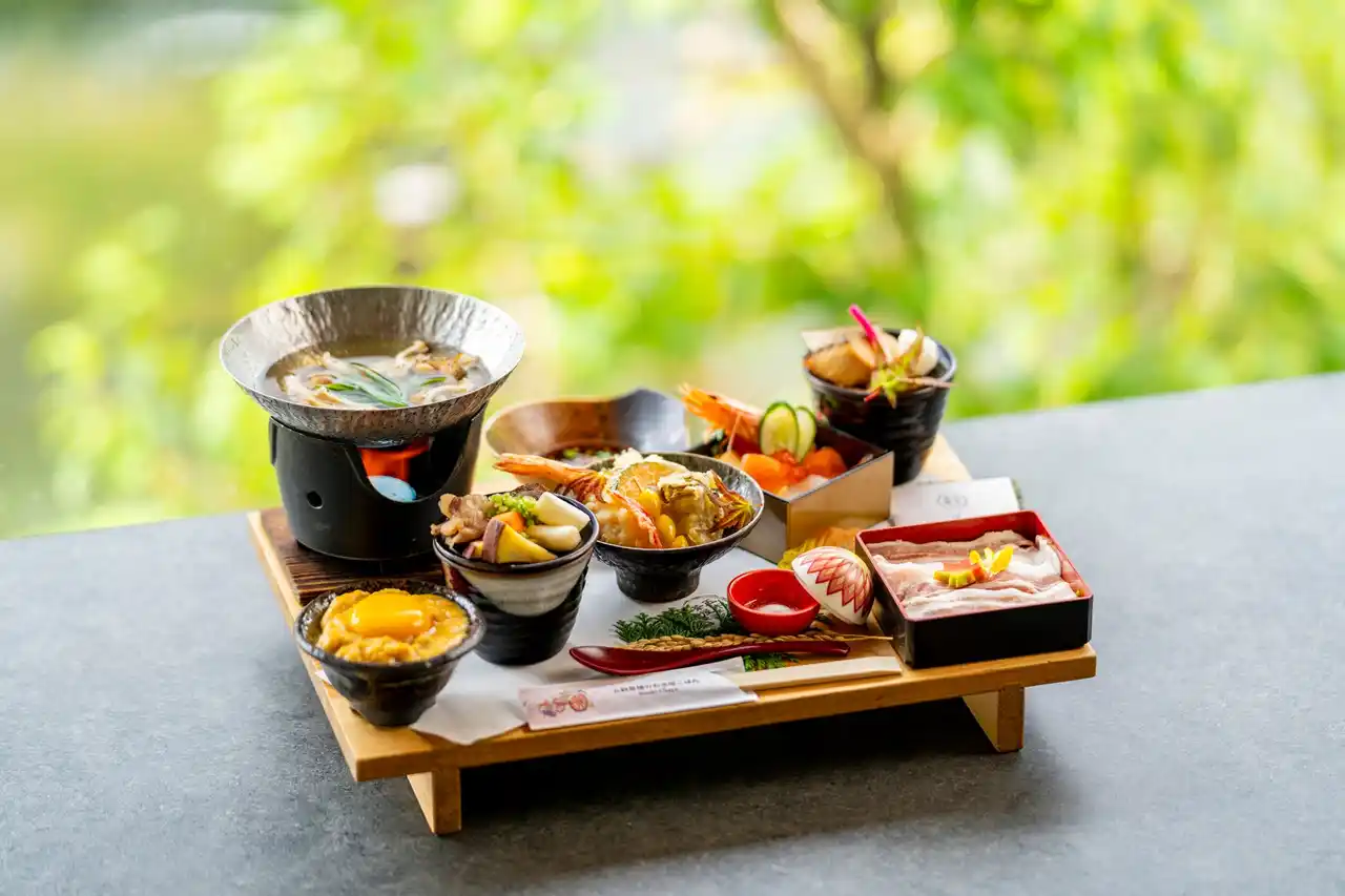 川庭の秋の風情をお楽しみいただける、五穀豊穣のお茶屋ごはん(R)︎ 五木茶屋 嵐山本店にて、今しか食べられない秋の京都の食材を存分にご堪能ください。 |