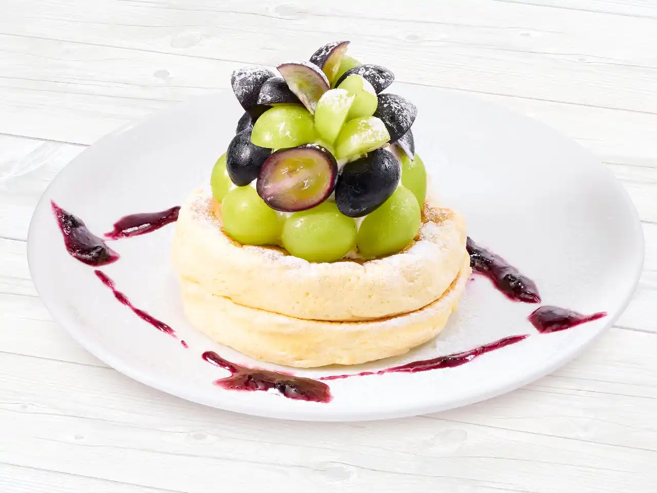 | 株式会社高倉町珈琲(本部所在地:東京都国立市東1-16-17 代表取締役会長 横川 竟)が運営する『高倉町珈琲』40店舗では、「季節限定の旬果パンケーキシリーズ」として、毎年好評の「ぶどうのリコッタパンケーキ」を今年も期間限定で販売いたします。今年も定番の「シャインマスカット」に加え、昨年好評だった「ナガノパープル」を採用、2色のぶどうを使用した「2色のぶどうのリコッタパンケーキ」として再登場!皮ごと食べられる2種類のぶどうは、見た目も味も華やかで、ぶどうの甘さと酸味のあるレアチーズクリームとの調和も抜群です。 | |||||||||