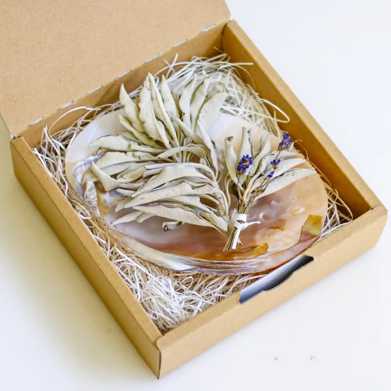 ホワイトセージと貝殻のプレートがセットになった、 ホワイトセージ初心者の方にぴったりのスターターセット。 浄化のある暮しを手軽に始めたい方にオススメのセットです。 そのままおしゃれなインテリアとしても活躍。 ギフトにも使えるボックス入りも嬉しいポイント◎ |