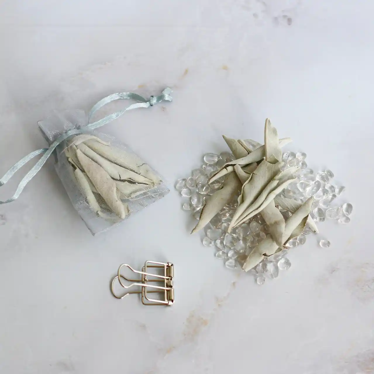 ・ホワイトセージチップ10回分 ・さざれ水晶(クリスタル) ・クリップ |