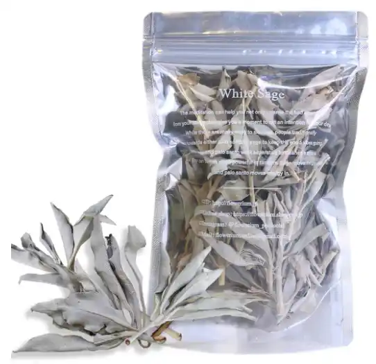 ホワイトセージ本来の香りと“浄化”の空気感をしっかり感じられる、定番人気のリーフタイプ。枝ごと詰めたパウチは、スマッジングや瞑想など、ギフトにもセルフケアにも幅広くお使いいただけます。 |