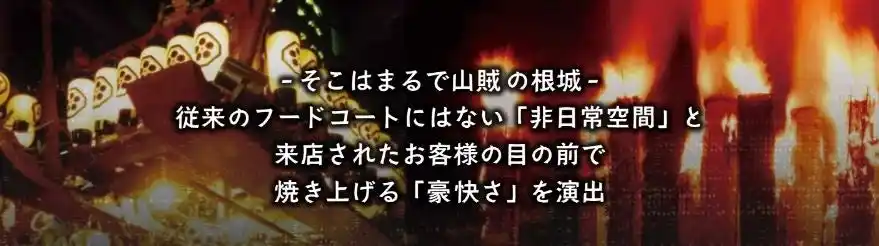 「山賊のすみか」は、単なる食事の場ではなく、お客様の目の前で焼き上げる豪快な山賊焼きを通じて、「非日常のお祭り感」を味わっていただくことを目指しています。 |