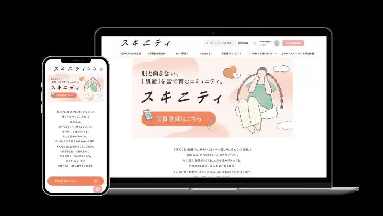 「スキニティ」は、どんな特徴をもった肌でも、時おり敏感になったり、ゆらぐことがあっても、「自分の肌を愛する力」を育み、自分の肌を前向きにとらえられるようになる方を増やすコミュニティとして始動します。 |