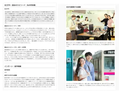 学生がOfferBoxに登録できるプロフィール項目は34項目です。所属学部や資格などの基本情報だけでなく、「自己PR」や「私の将来像」など各項目において最大400文字で記入することができます。従来の履歴書では伝えきれなかった個性や価値観を、自由に表現することが可能です。 |