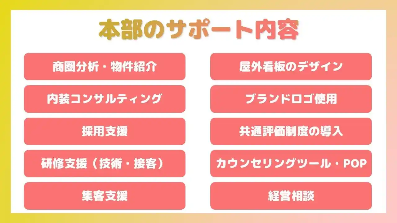 ■フランチャイズ本部のサポート内容 |