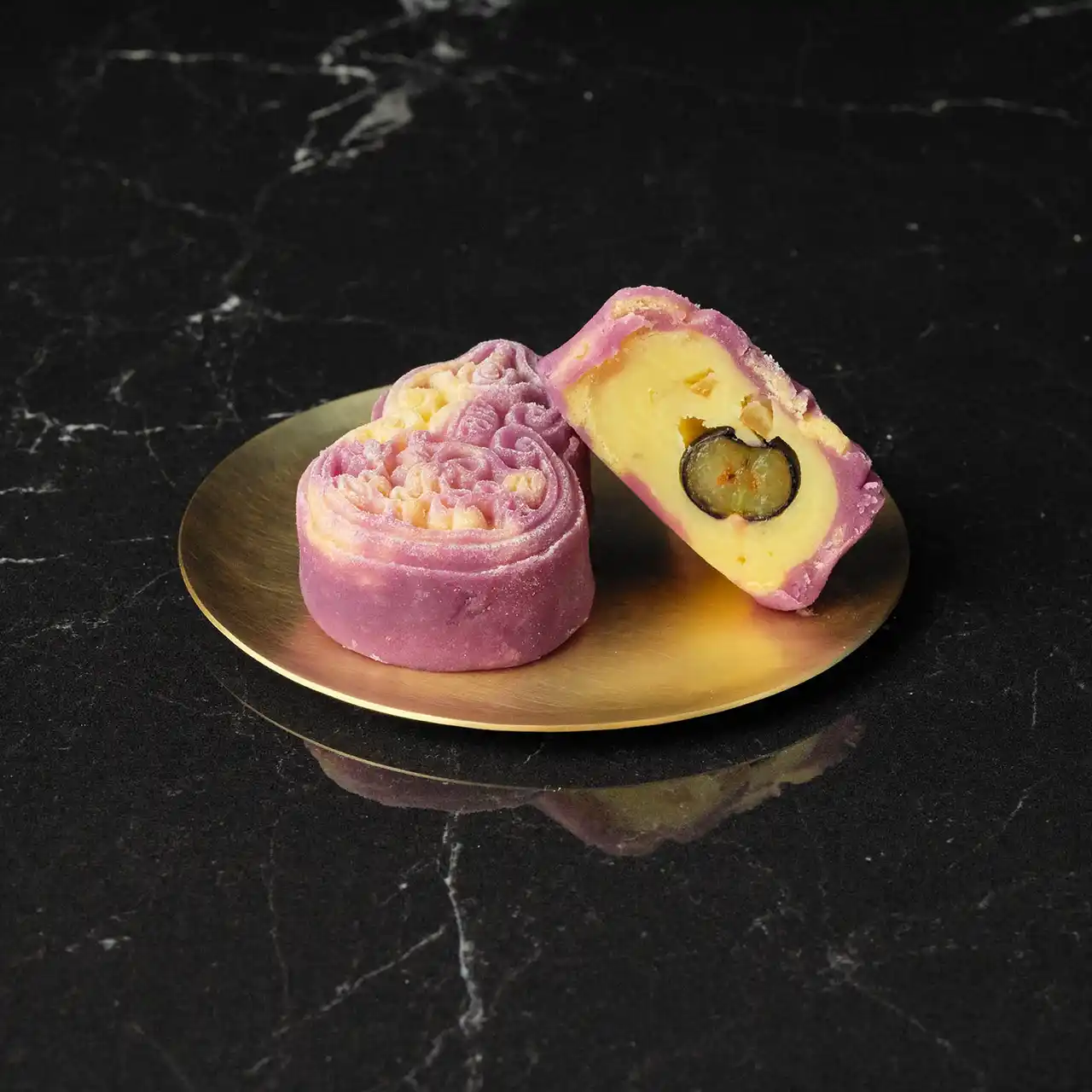 | 伝統的な焼き月餅とは違い、雪肌のようになめらかで、もちもちっとした半生タイプの月餅です。 | |||||||||||