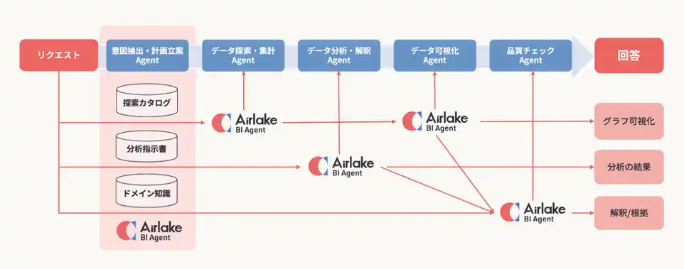 専門のチームが、DWHと「Airlake BI Agent」を一体化したシステムとして構築し、より高速・高精度な出力AIエージェント構築を実現します。 |