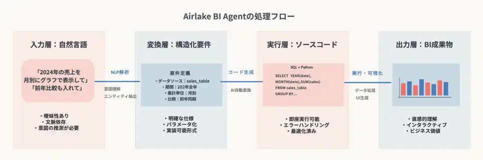 株式会社DATAFLUCT(本社:東京都渋谷区、代表取締役CEO:久米村 隼人)は、自然言語の対話だけでデータ分析を自動化する「Airlake BI Agent」β版の提供を開始します。SQLやPythonの知識が不要で、従来9時間かかっていたレポート作成をわずか30分に短縮し、“全社員がアナリストになる世界”を実現します。 |