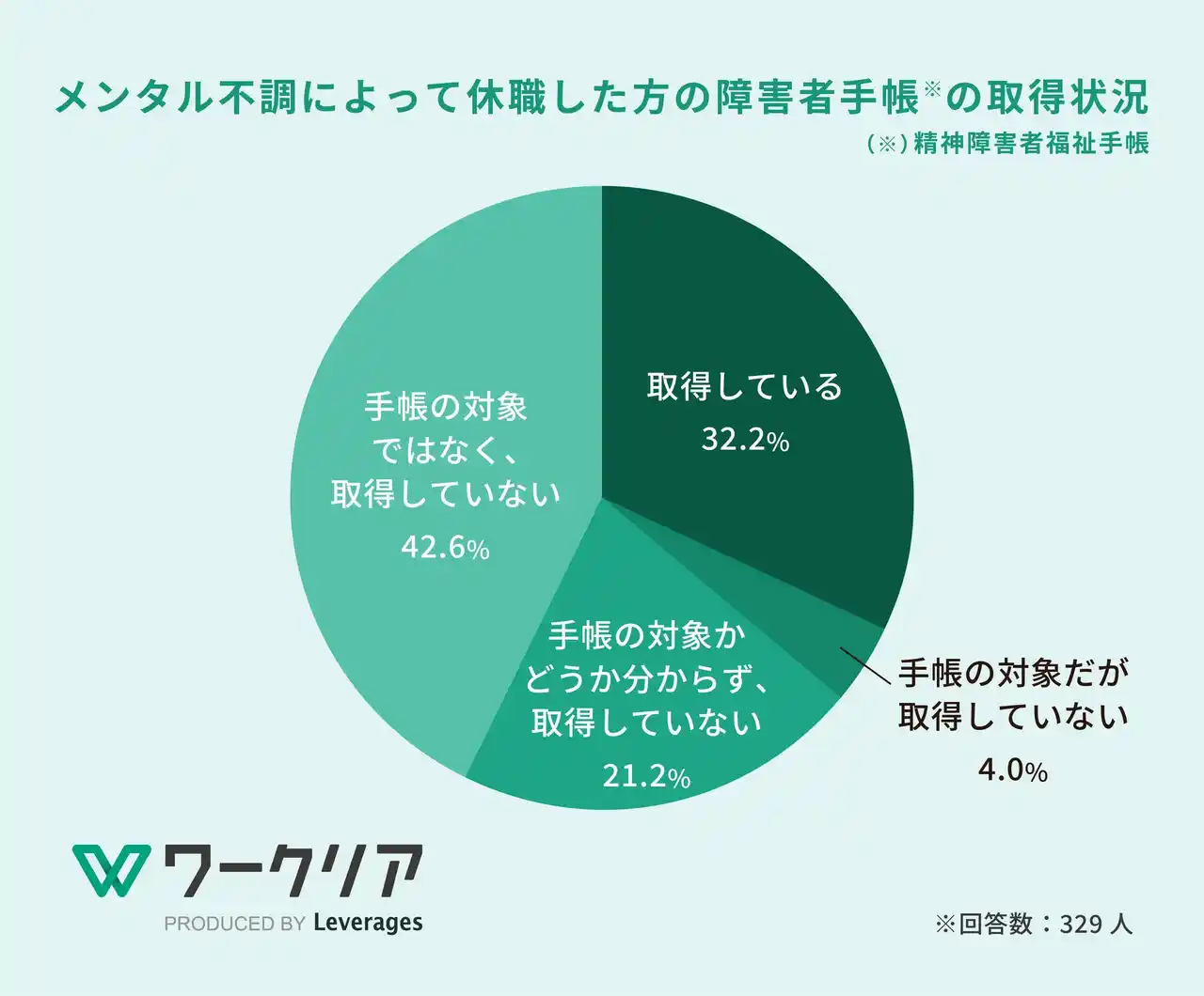 メンタルヘルスを理由に休職した方の約3割が障害者手帳を取得 |