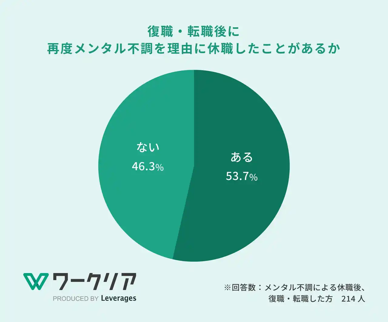 今回の調査により、職場の人間関係やハラスメント、業務量の多さがメンタルヘルス不調による休職の主な要因であることが明らかになりました。さらに、休職した方の約半数が退職していることや、復職や転職した方の半数以上が再休職していることから、メンタルヘルス不調が個人のキャリアに長期的な影響を及ぼしている実態も浮き彫りになりました。 |