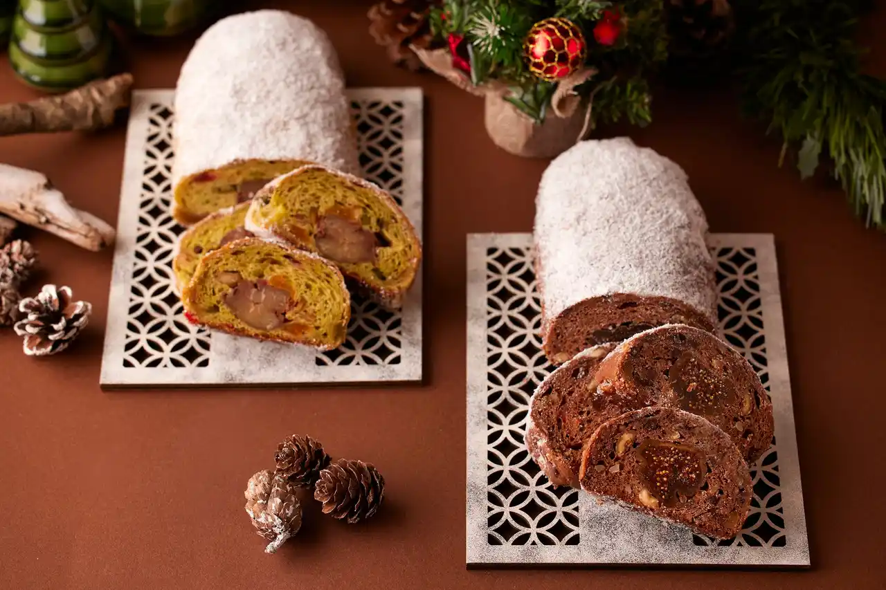 『シュトーレン』(左:ピスタチオ、右:チョコレート) |