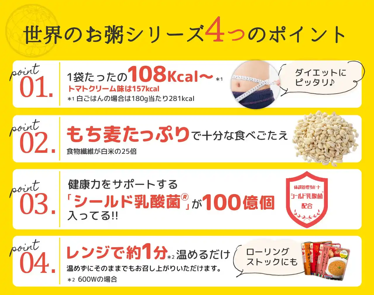 世界のお粥シリーズ4つのポイント |