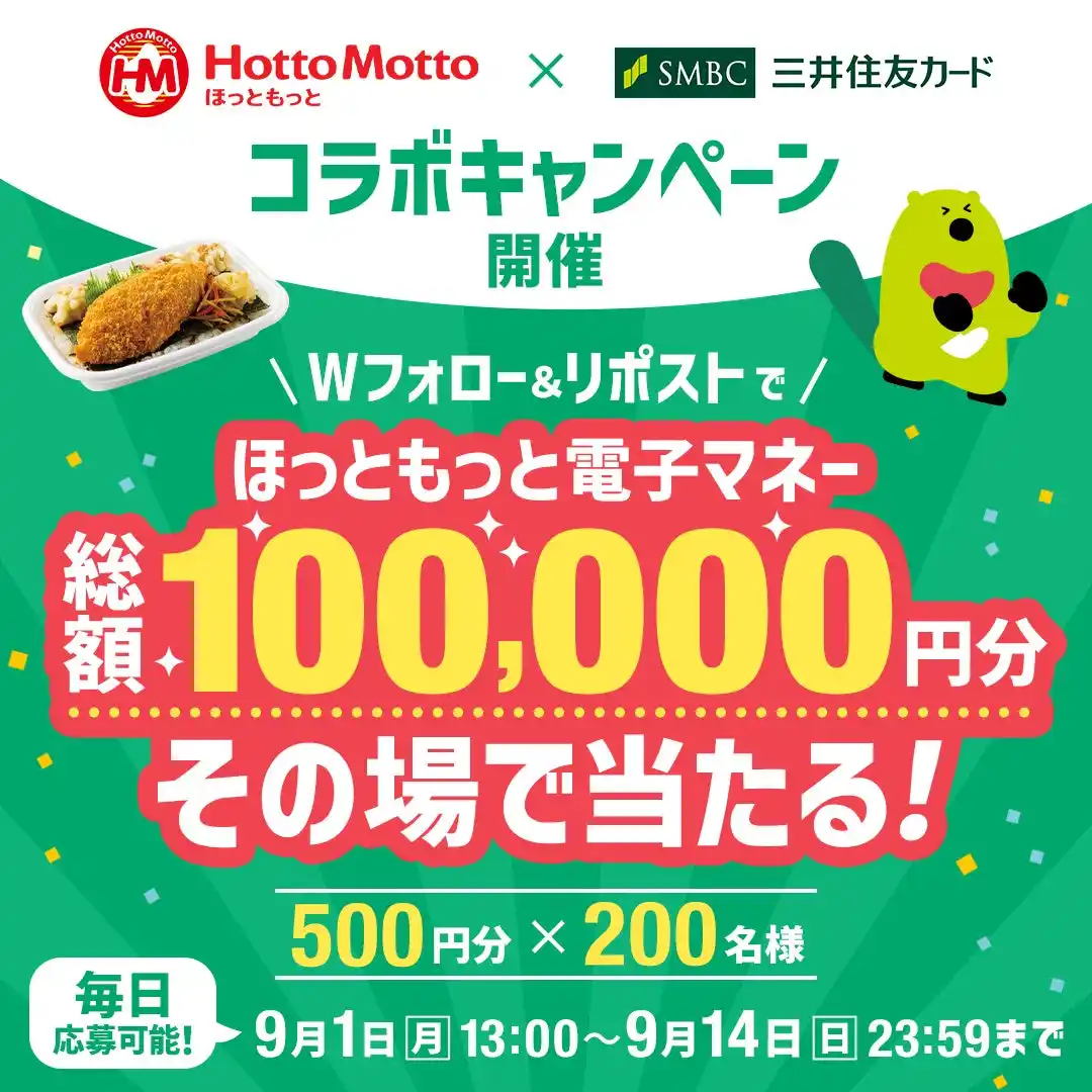 「ほっともっと×三井住友カード」公式Xフォロー&リポストキャンペーン |