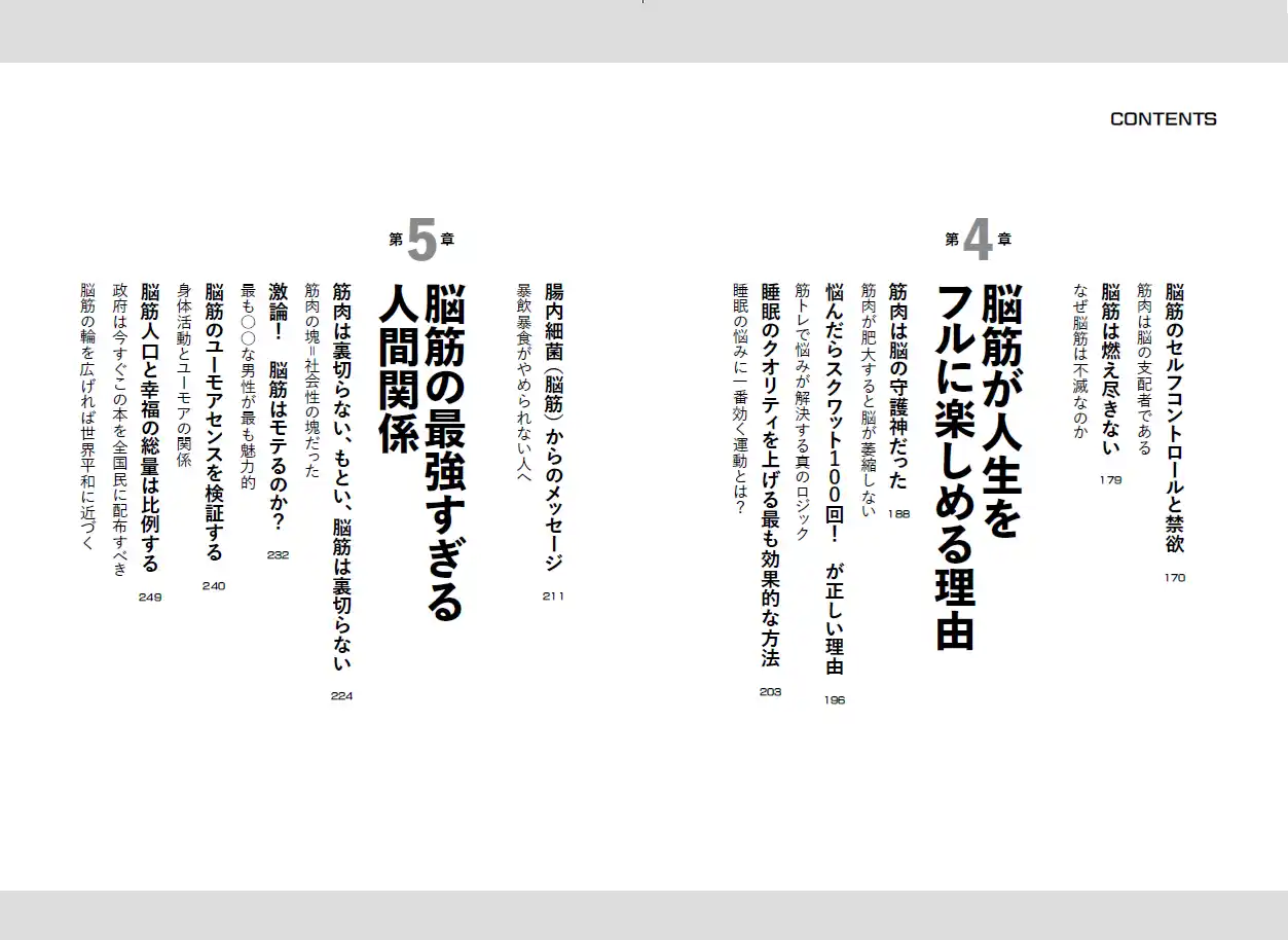 | 本書は「筋トレをすれば筋肉だけでなく脳も最強になる」というコンセプトのもと、日本を代表する筋トレインフルエンサーTestosteroneと東北大学で筋トレと脳機能についての研究に打ち込む傍ら、パワ ーリフティングの選手としても活躍する曽我啓史助教が「最強脳筋タッグ」を結成。最新のエビデンスと笑いに満ちた語り口で、「脳みそまで筋肉=脳筋」のポテンシャルを解き明かす一冊です。 | |||