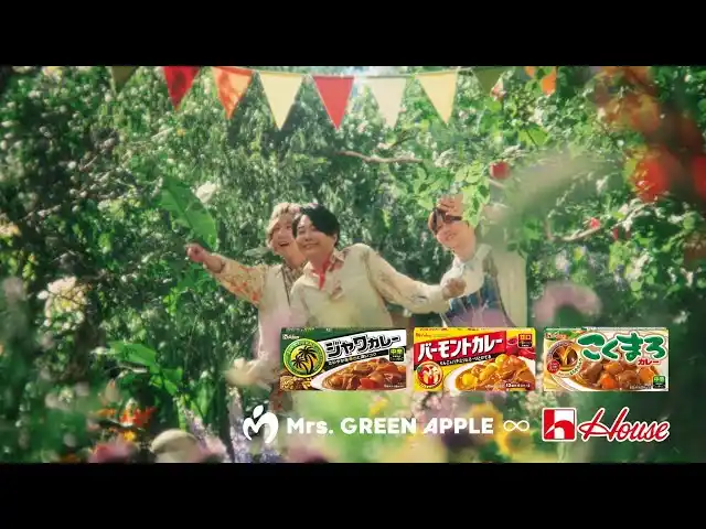 (出所 Mrs. GREEN APPLE出演CM「不思議なカレーパーティー・夏」篇15秒 2025/07/11 https://youtu.be/QFiqUoo1TI4?feature=shared) |