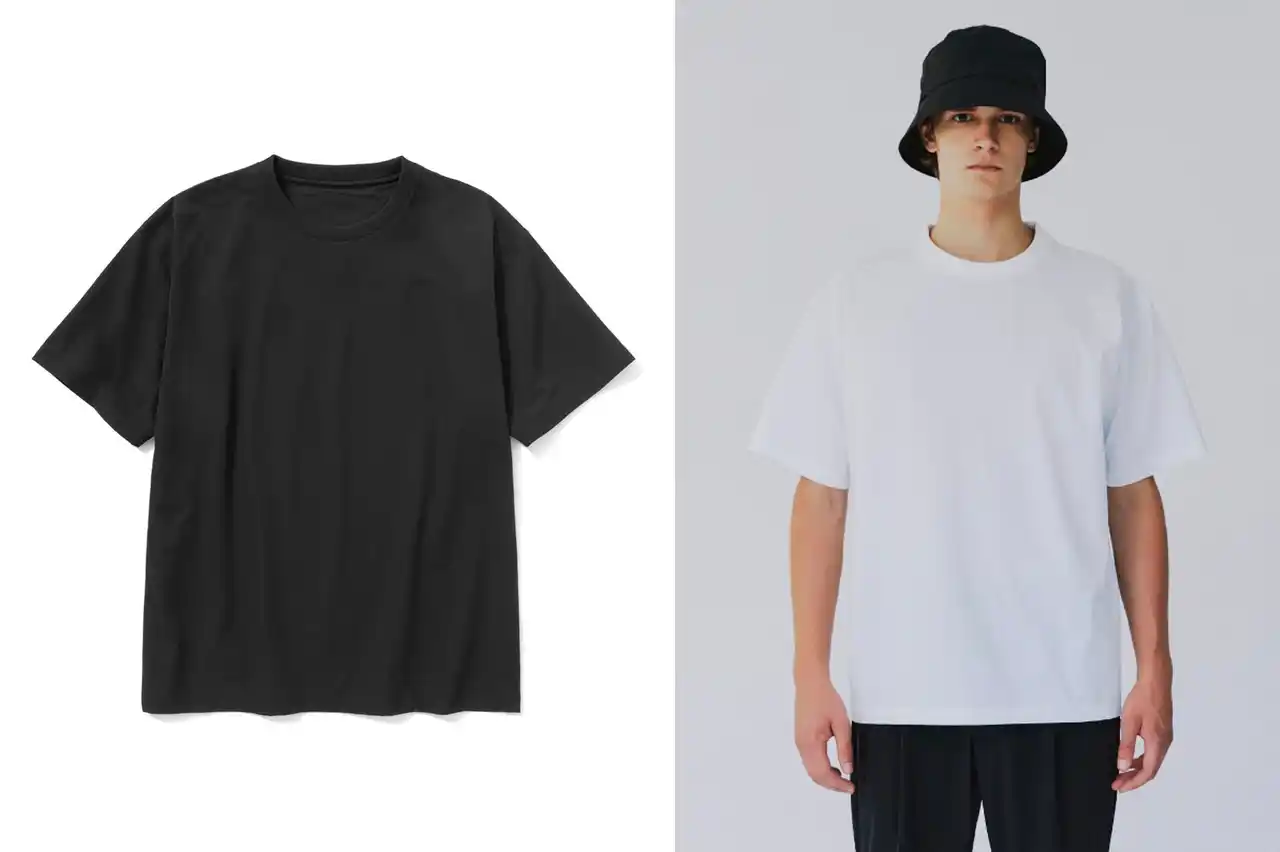 テックTシャツは袖口にフラットシーマ縫製を採用し、肌当たりの良さを追求。身幅にゆとりを持たせたリラックスシルエットながら、シャツイン時のバランスも計算されており、ジャケットのインナーとしても上品に着こなせます。 |