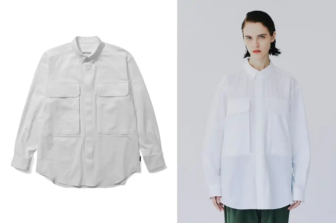 「UNTRACK」では、一部トップスに、財布やパスポート、スマートフォン、鍵、イヤホンといった身の回り品を収納できる“着るバッグ”仕様の機能ポケットを採用しました。バッグを持たずとも十分な収納力を備え、手ぶらで快適に外出できるアイテムを提案します。 |
