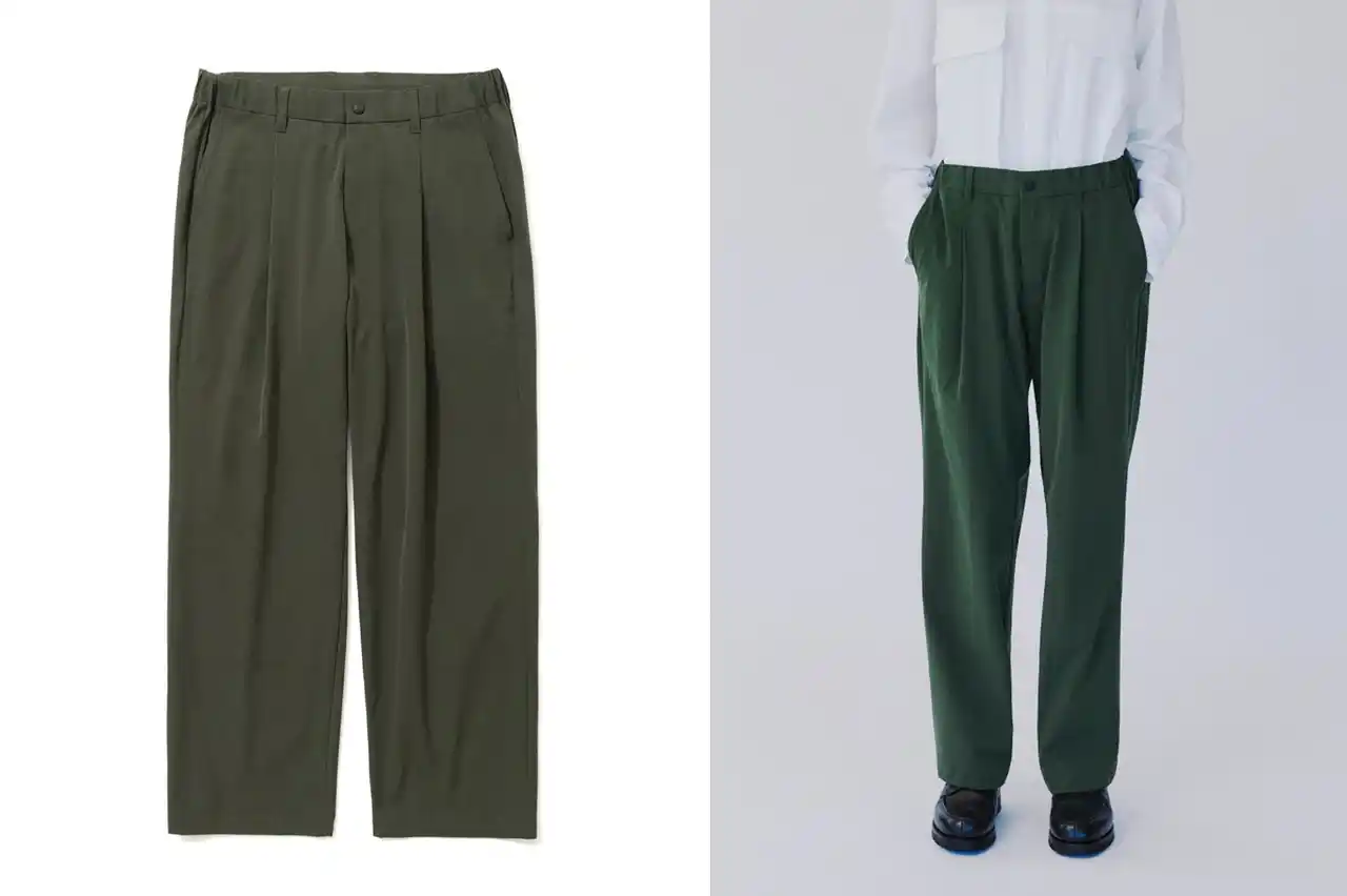 セットアップで着用できるパンツは、ワイドとテーパードの2タイプから選べます。 |