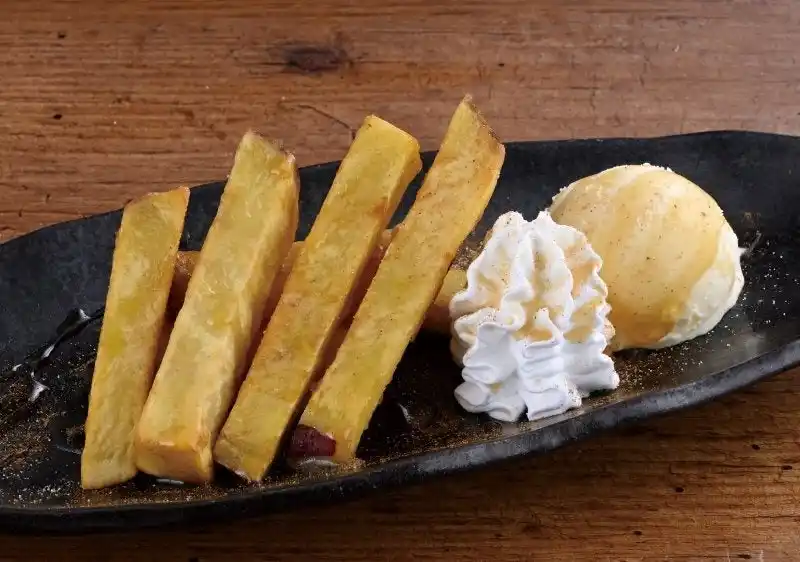 | [国産さつまいも使用]さつまいもスティックバニラアイス添え 498円(税込548円) | ||||||||||||||
