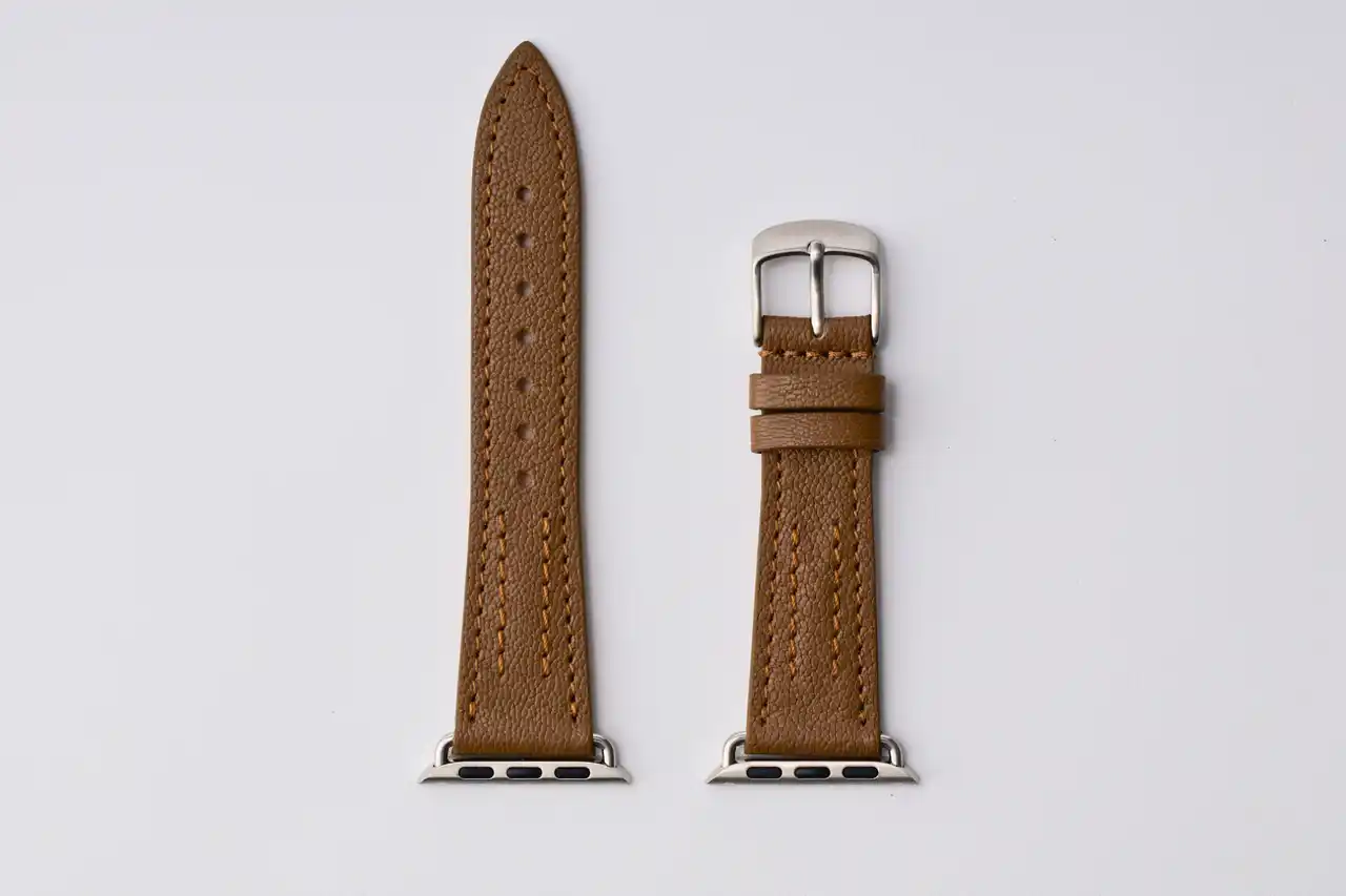暖かみのあるトープのバンドにブラウンのステッチを合わせました。 |