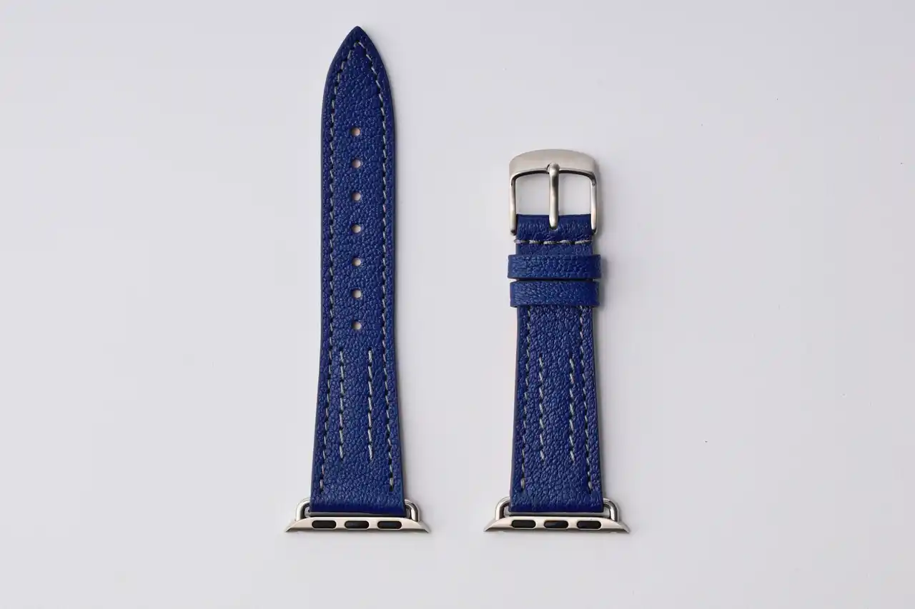 ネイビーよりも少し明るめのインクブルーのバンドにシルバーのステッチを合わせました。 |