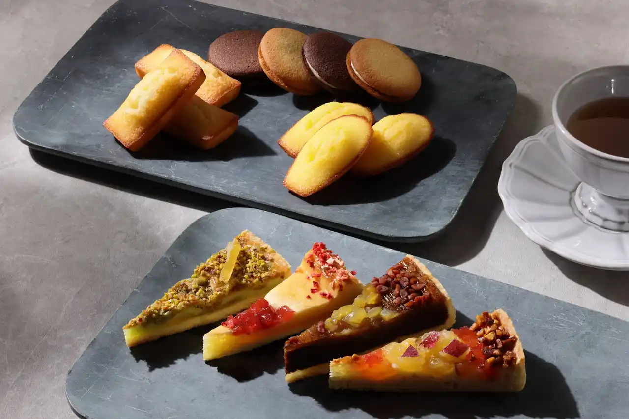 素材のマリアージュやアクセントのつくり方など、サロン・ド・テのエスプリを効かせたシェフの新作タルトがアソートで登場。季節限定のタルト・フリュイのほか、自慢のフィナンシェやマドレーヌ、ラング・ド・シャが入ったバリエーション豊富な詰め合わせです。 |