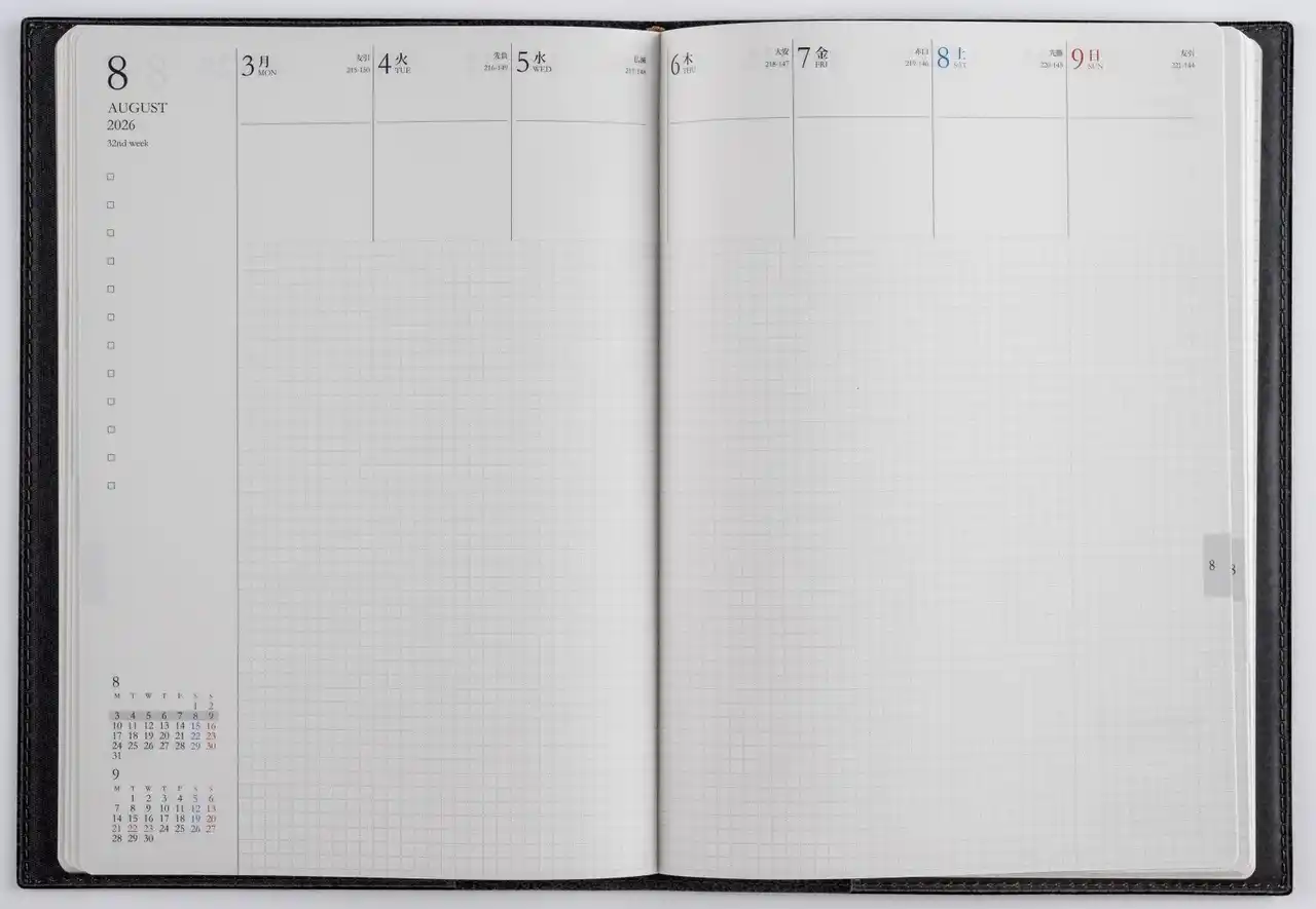 ●カジュアル ウィークリー:ビジネスシーンで活躍するシンプルでコンパクトな手帳 |