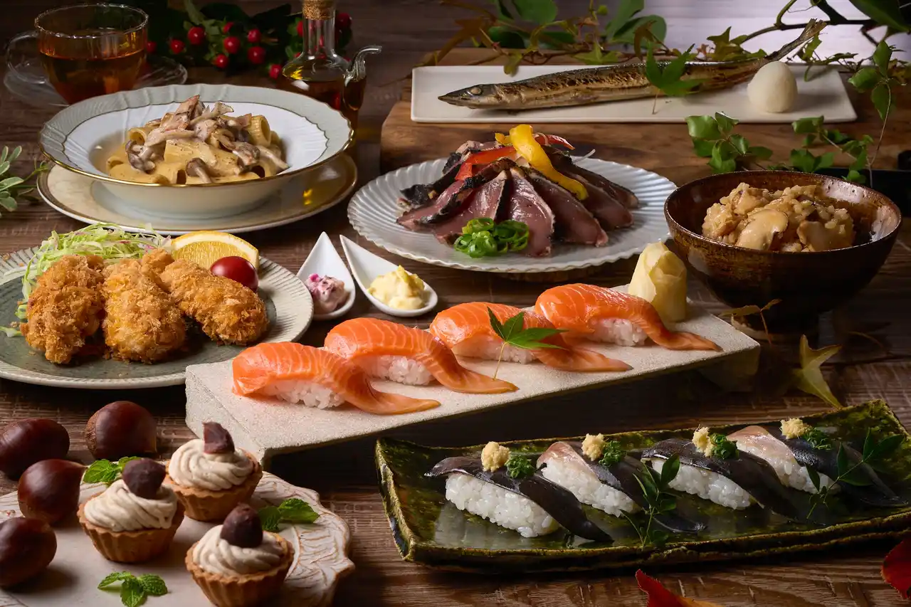 9月1日(月)~11月30日(日)の期間限定で、秋フェアメニューが登場。新鮮な秋刀魚握りや、脂の乗ったキングサーモン握り、香ばしいかつおたたきといった海の幸をはじめ、松茸ごはんや朝食には炭火でじっくり焼き上げた秋刀魚一本焼きをご用意。この季節ならではの旬の味覚を、心ゆくまでお楽しみいただけます。 |