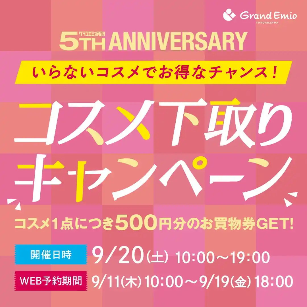 1.最大1,500円分のお買物券をプレゼント!「コスメ下取りキャンペーン」/グランエミオ所沢 |