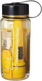 「モシモニソナエル 防災備蓄ボトル 7点セット」は、容量約630mlの給水ボトルのなかに、LEDライトやレインコート・アルミシート等災害時に役立つアイテム6点が入ったボトルを含め7点のセットです。コンパクトなボトルタイプはケースと給水ボトルの2役を担い、軽くて持ち出しやすく、車内等の狭いスペースにも保管できます。 |