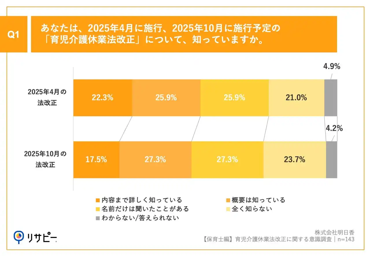 Q1.あなたは、2025年4月に施行、2025年10月に施行予定の『育児介護休業法改正』について、知っていますか。 |