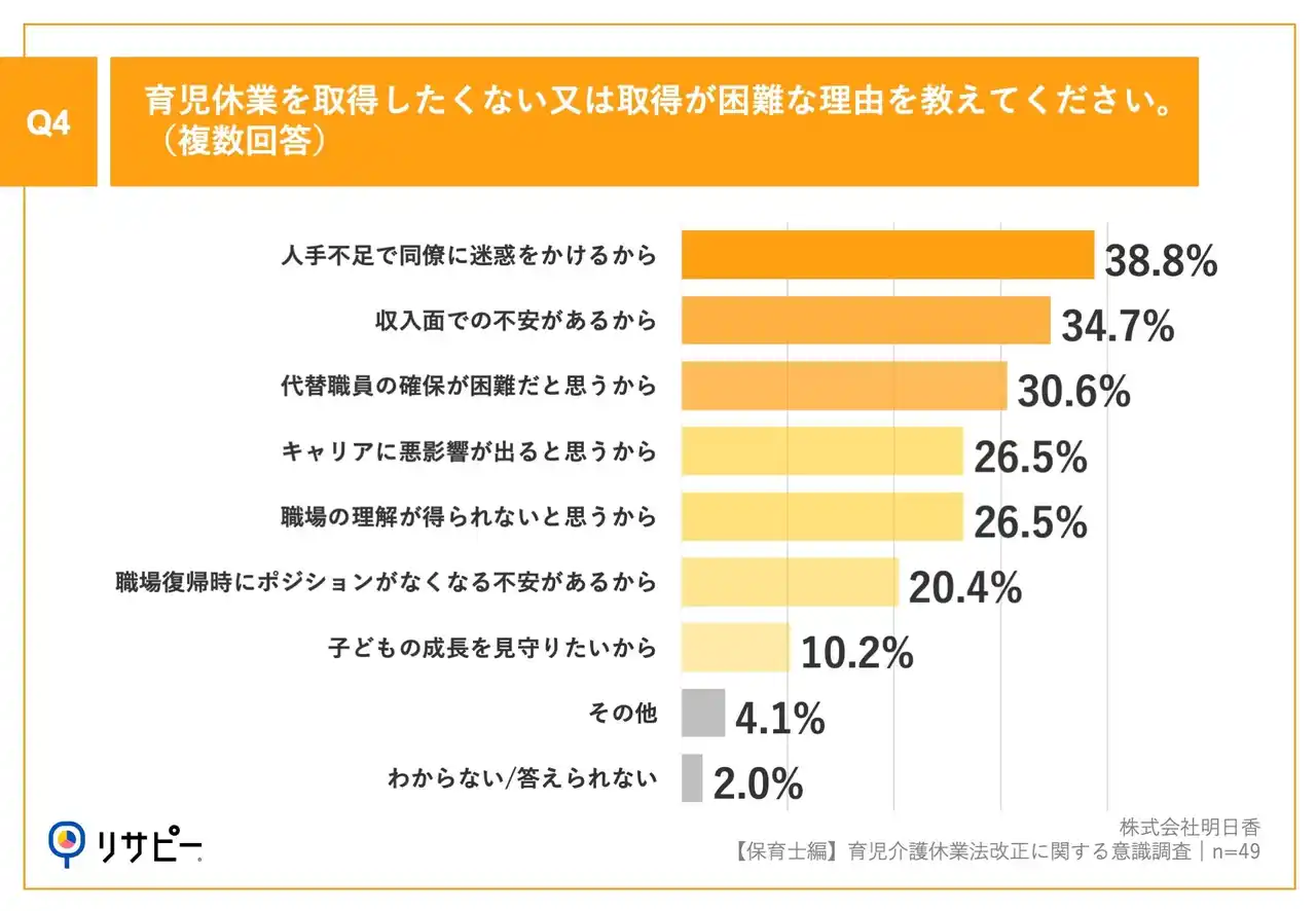 Q4.育児休業を取得したくない又は取得が困難な理由を教えてください。(複数回答) |