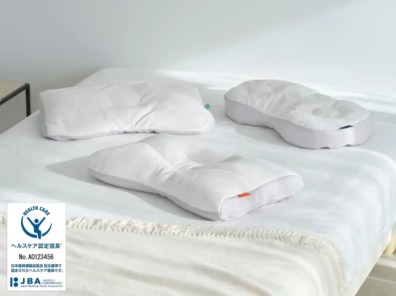 「医師がすすめる健康枕」シリーズは、健康機能や安全性などを証明する第3者検証機関等での科学的根拠を有する製品に与えられる、一般社団法人 日本寝具寝装品協会の「ヘルスケア認定寝具(R)」認定を取得しています。 |