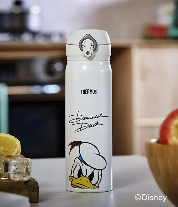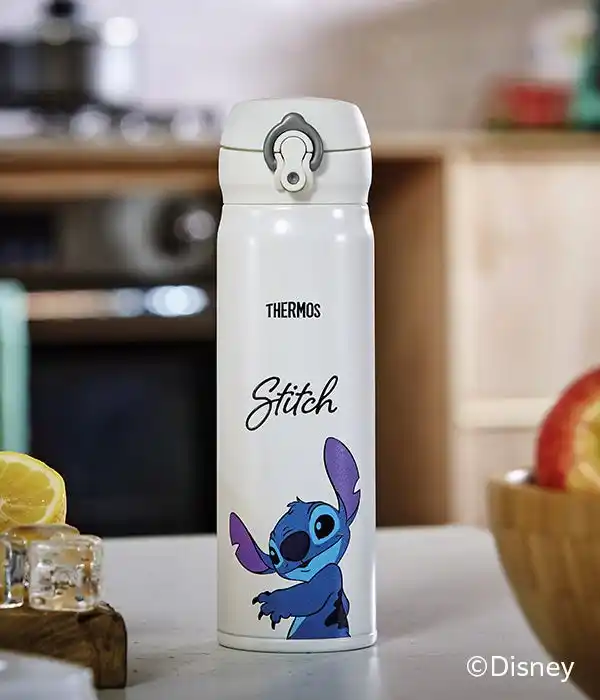 このたび、新発売する『真空断熱ケータイマグ(JNL-506DS)』は、ミッキー、ドナルド、スティッチなどディズニーの人気キャラクターをデザインした限定ボトルです。ボトルの正背面に、キャラクターがダイナミックに描かれ、ディズニー好きにはたまらない魅力的なデザインです。 |
